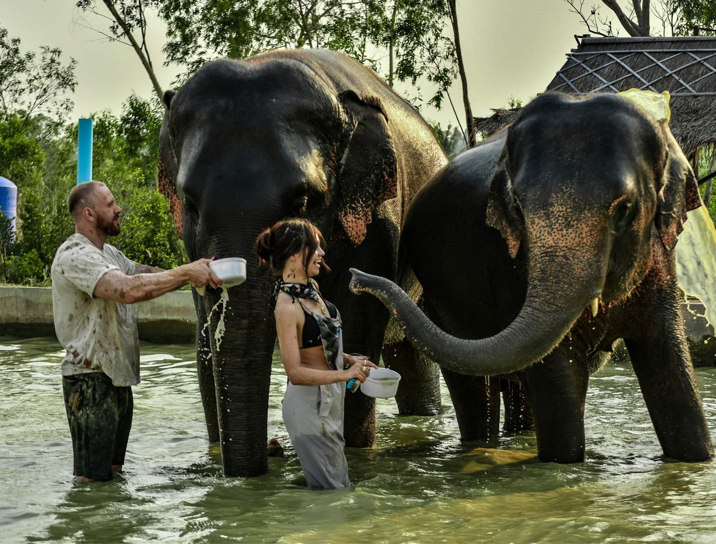 - Mud bath, shower with elephants