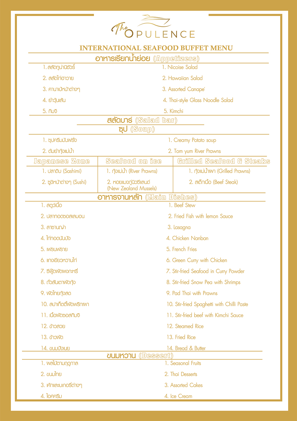 - Embark on an unforgettable cruise enjoying the highest quality of Thai and International buffets.