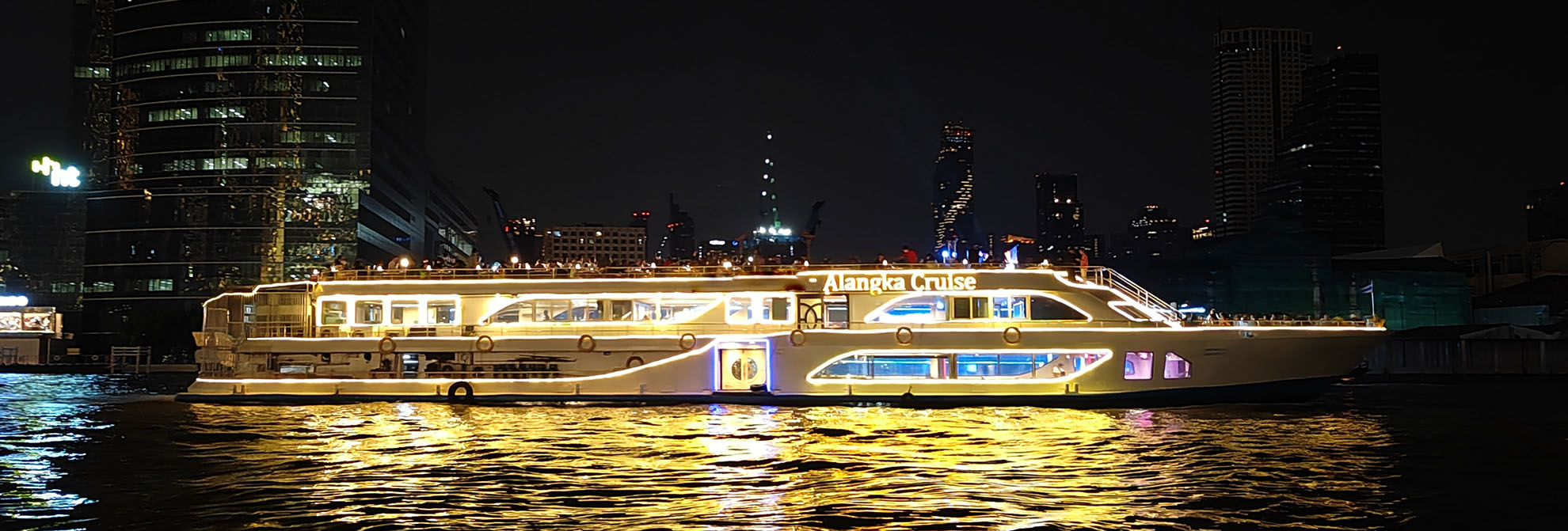 - รับประทานอาหารค่ำบุฟเฟ่ต์ไทย-นานาชาติ ซีฟู้ด บาร์บีคิว น้ำอัดลม เบียร์ และ ไวน์ เติมไม่อั้น ตลอดการเดินทาง